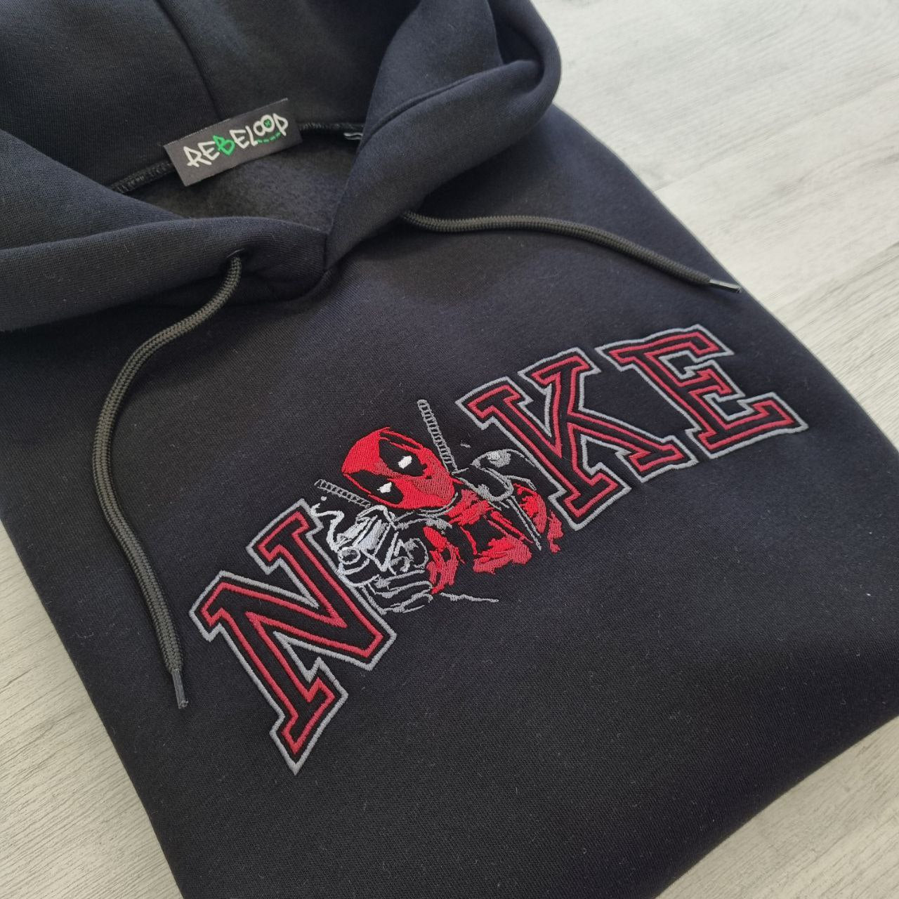Felpa con ricamo ispirato a Deadpool.