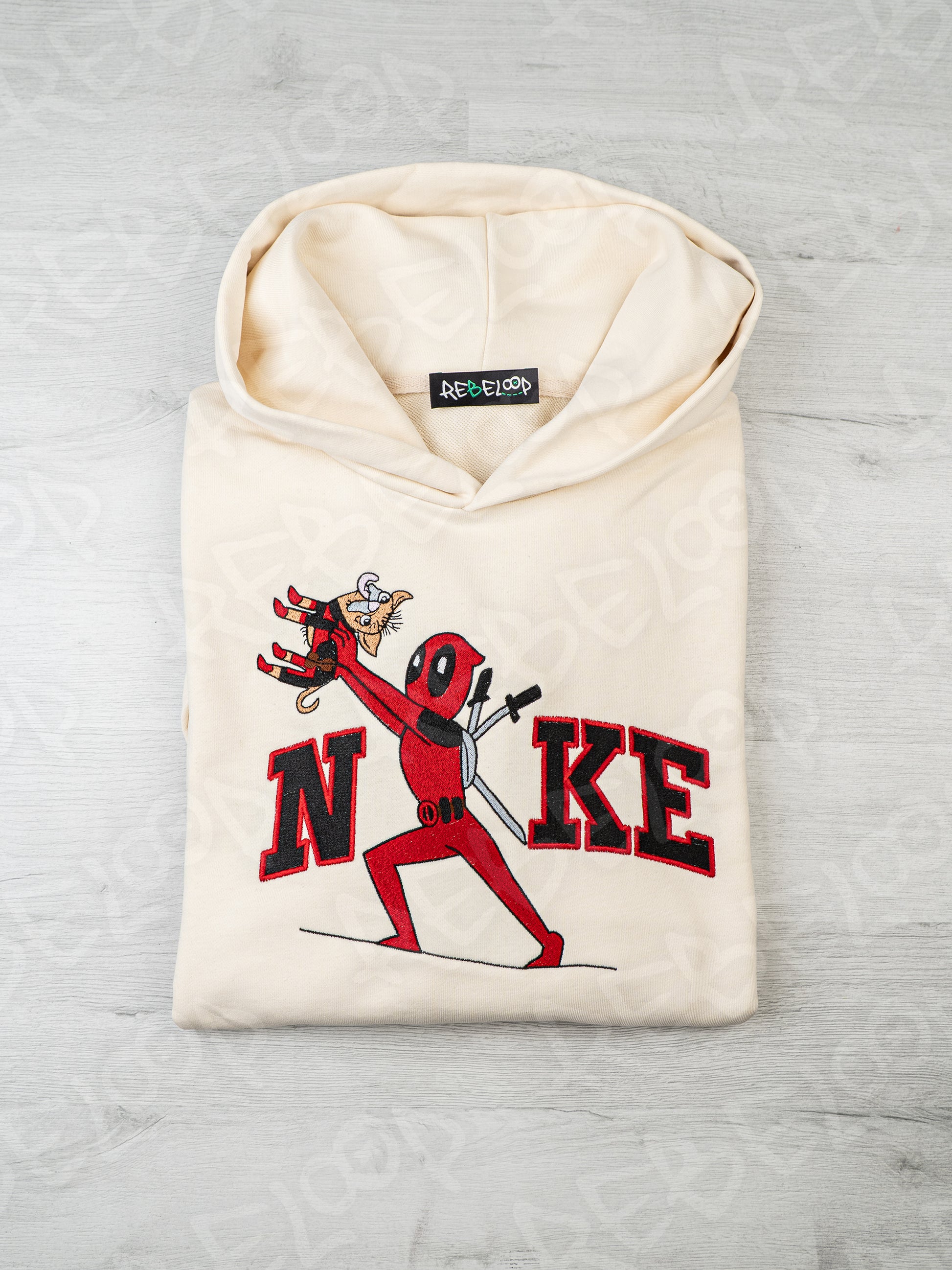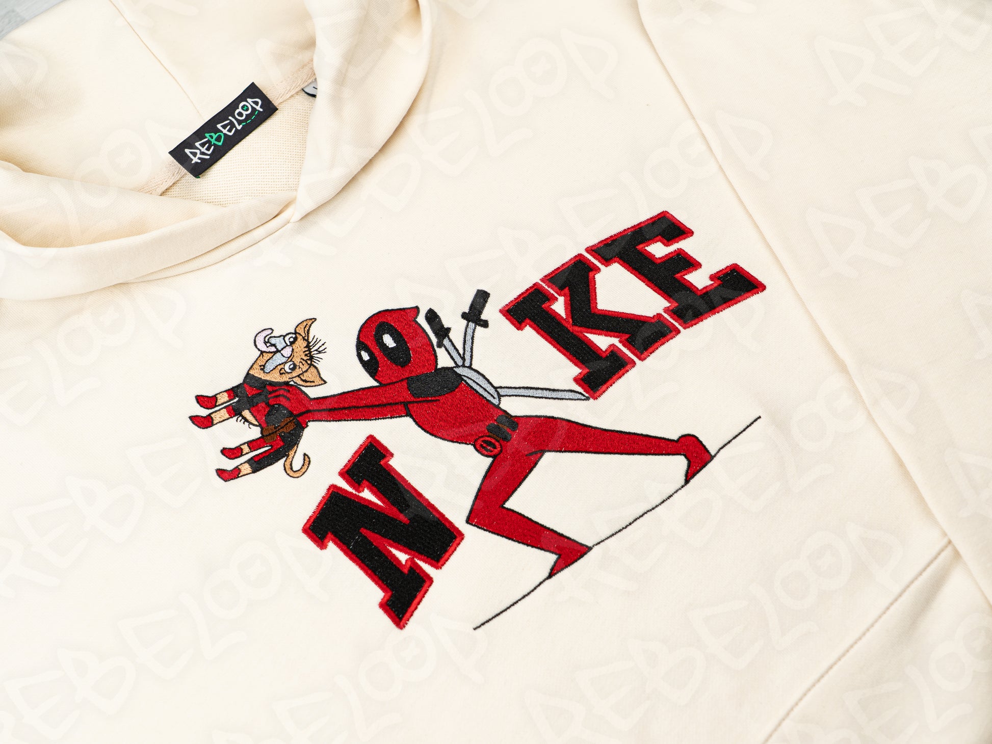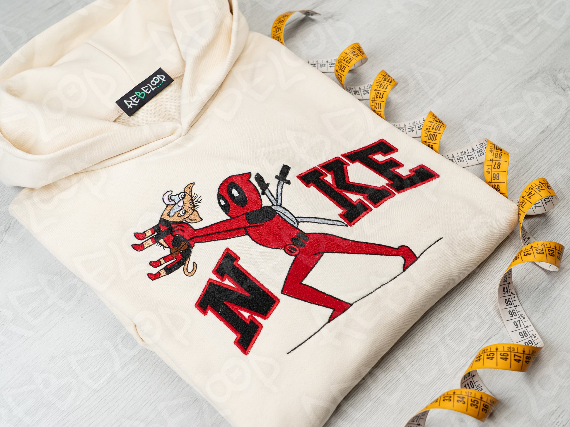 Felpa con ricamo ispirato a Deadpool e Dogpool, cappellino non compreso.