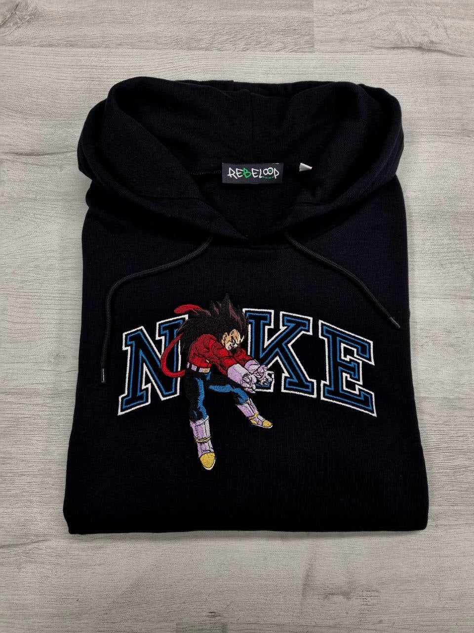 Felpa con ricamo ispirato a Vegeta Super Saiyan 4 da Dragon Ball, con scritta in doppio cordoncino con colori in contrasto.