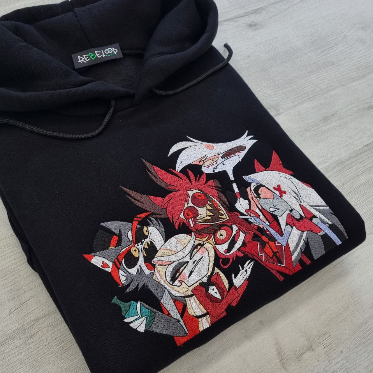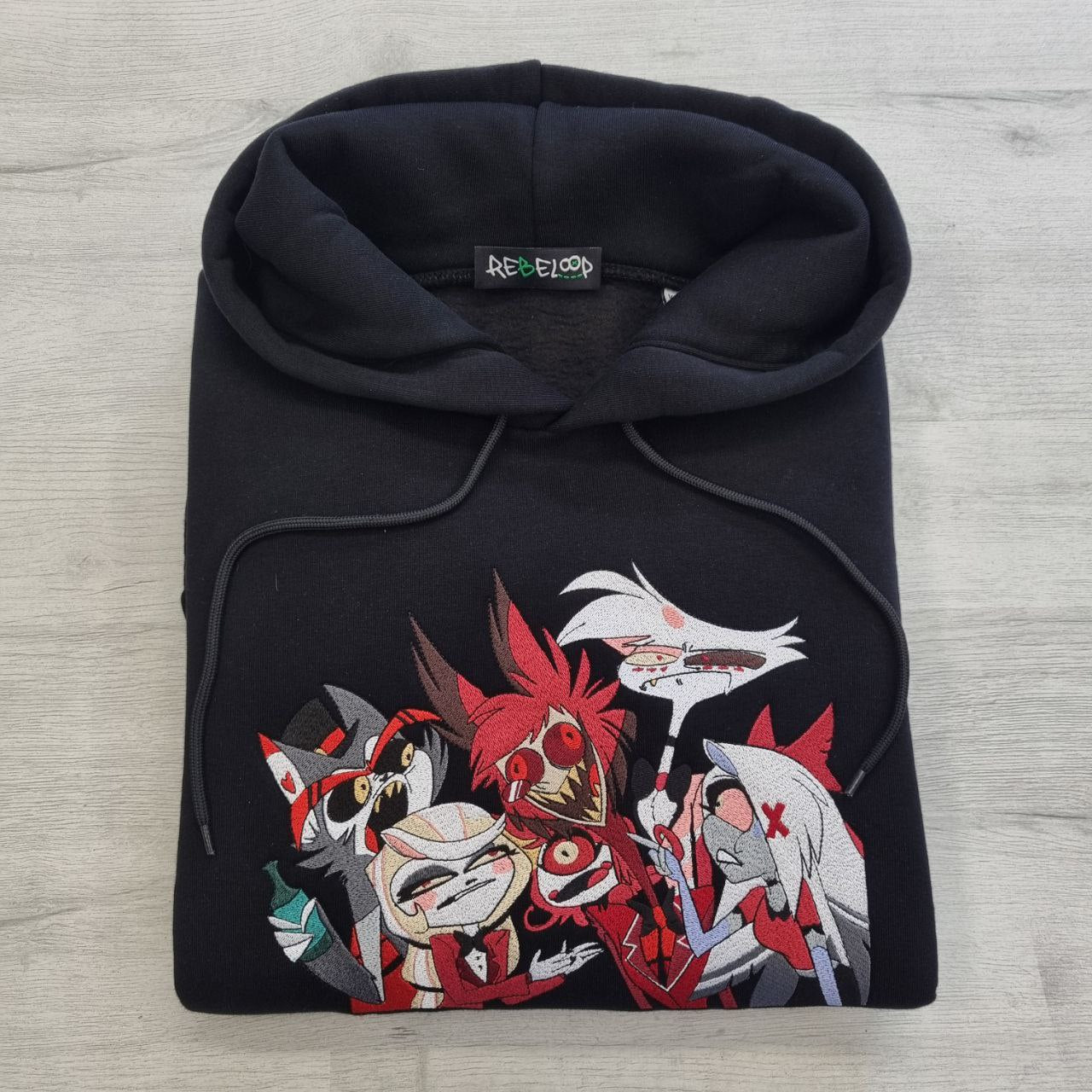 Felpa con ricamo ispirato alla serie Hazbin Hotel.