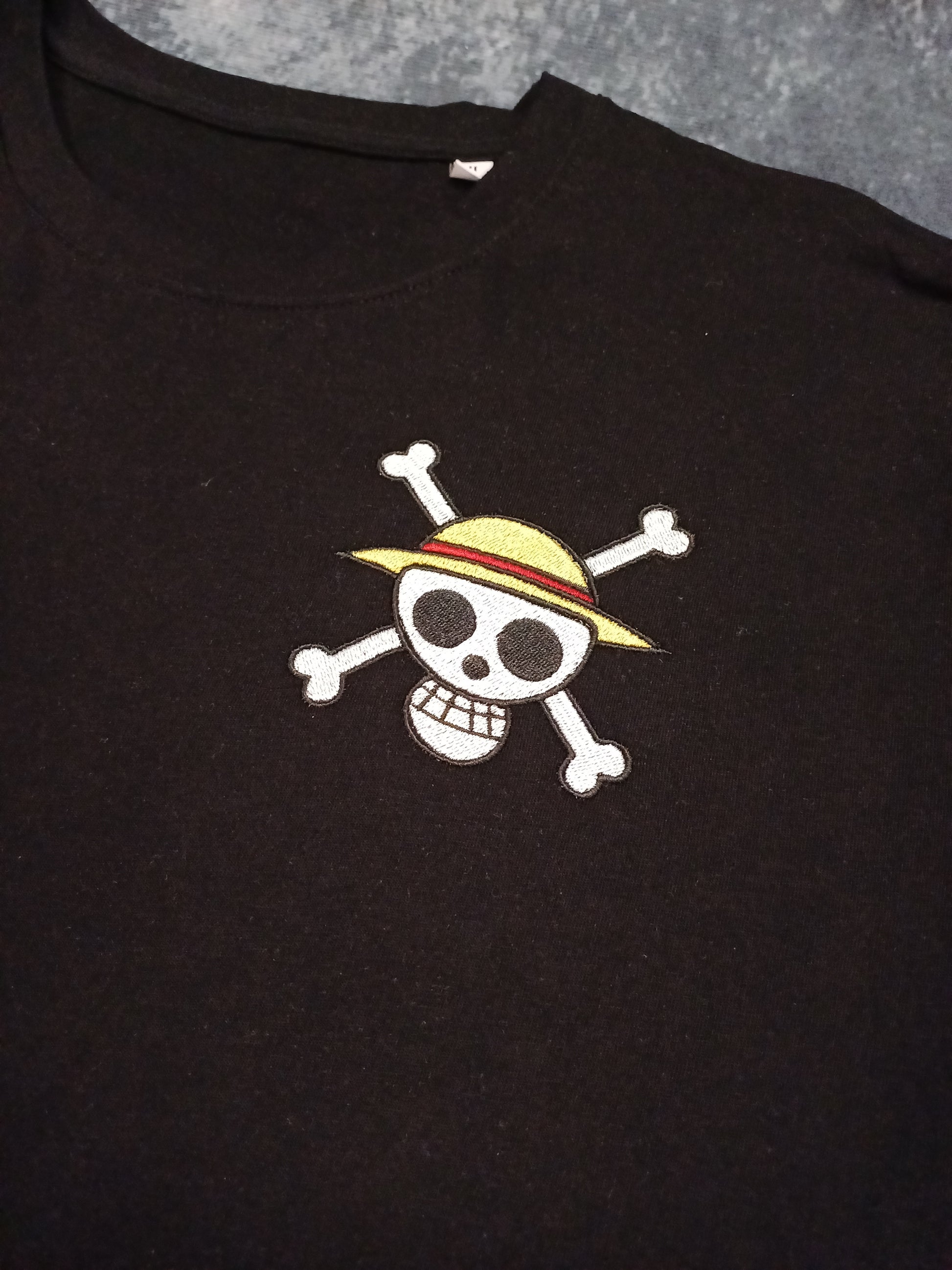 T-shirt ricamata One Piece teschio Luffy